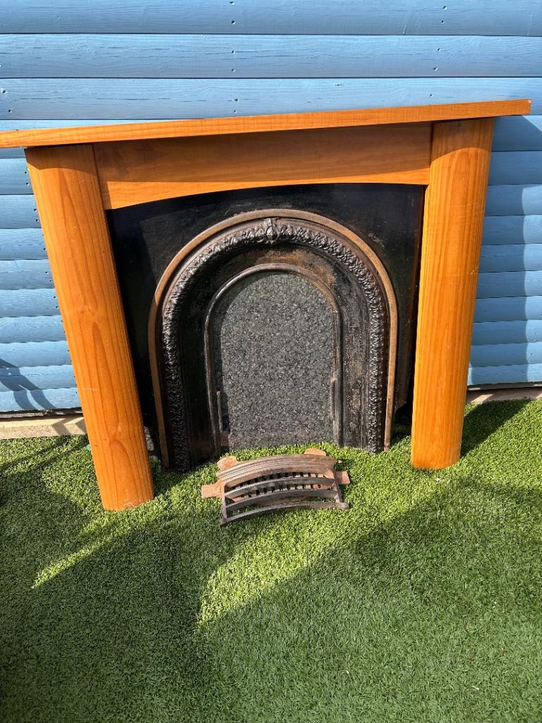 Cast iron fire surround, with grate. Also a wooden fireplace with marble effect board for effect. Great buy for up cycling project. Sensible Offers considered. Buyer must uplift.