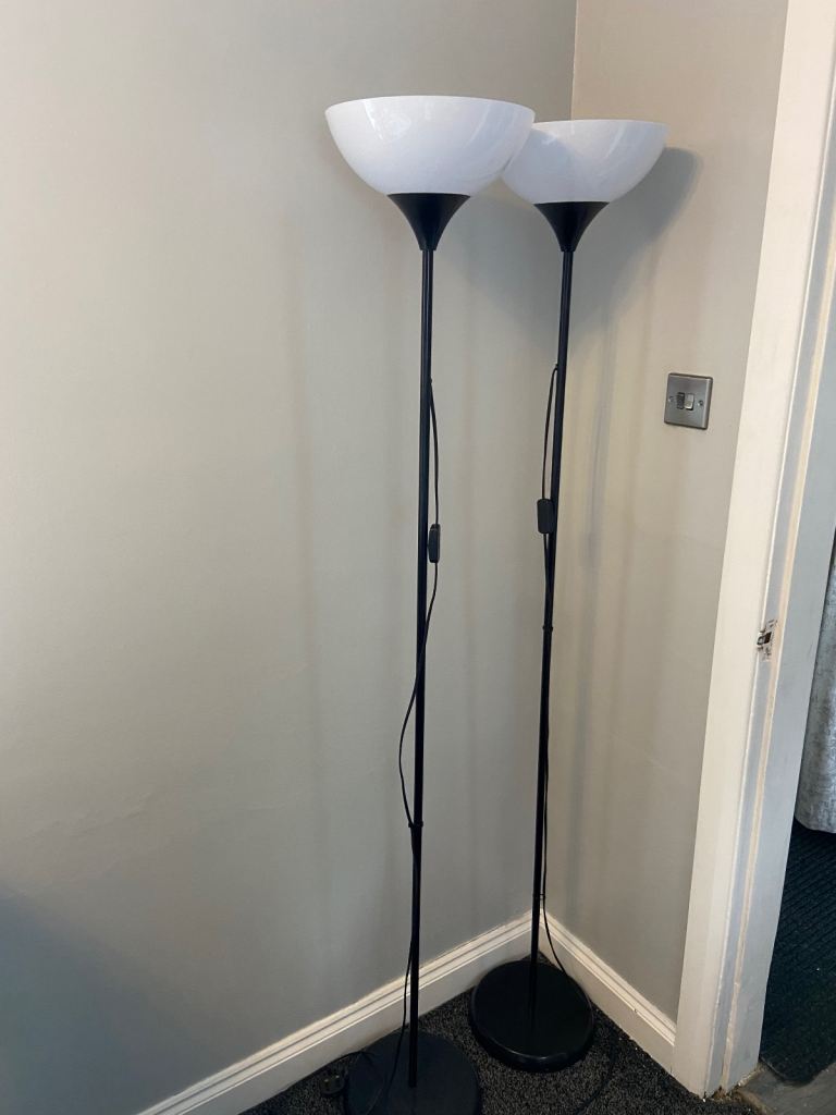 For sale: 2 x floor lamp/up lights bought from IKEA. Both in great condition, in black, with a on/off switch and UK plug. Height approx 180cm Selling £10 for both Collection in NR3
