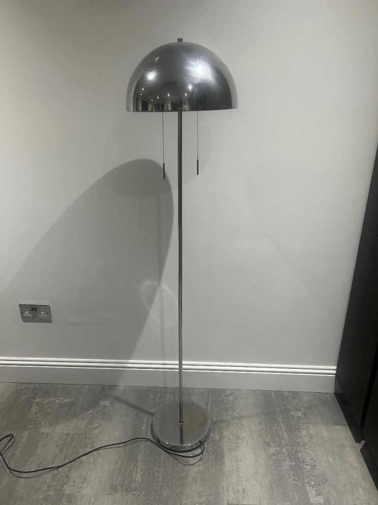 Next modern chrome floor lamps standing at 150 cm. Features a slim stem and curved dome shade in polished chrome. Pull cord to switch on and off. Willing to sell separately for £20 each