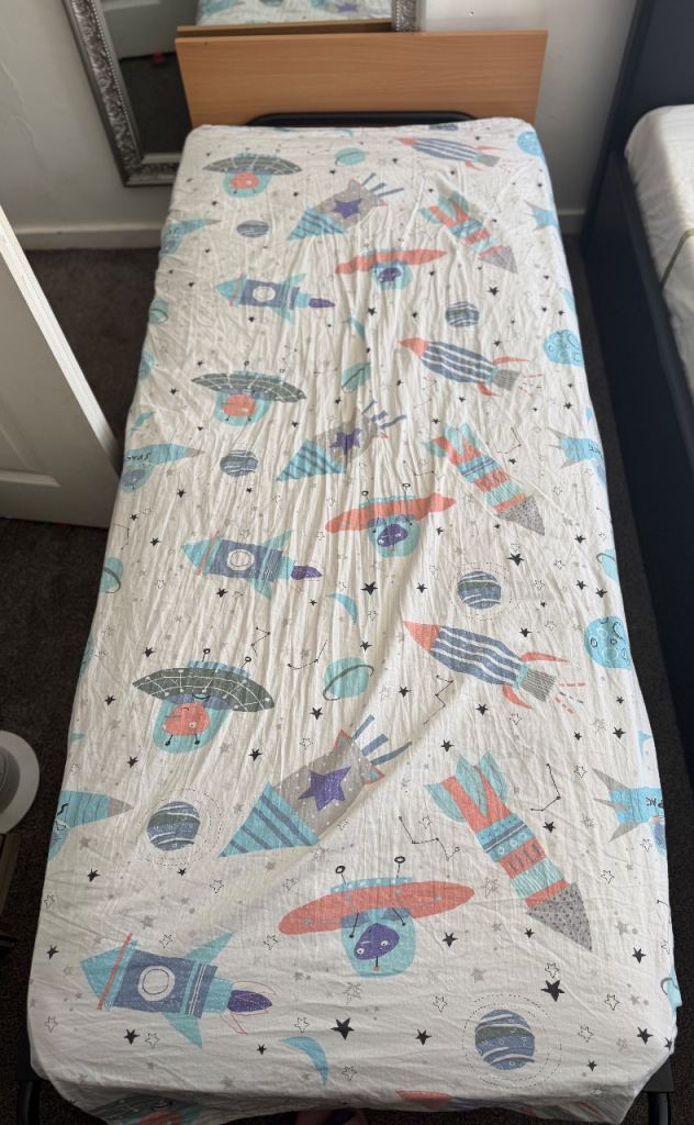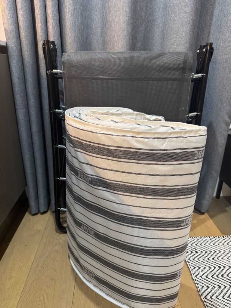 Folding bed with mattress with comfort j-tex base system. Open: W70 x L186 x H38cm Folded: W70 x H93 x D10cm Never been used. Collection only from HA9 Wembley Park