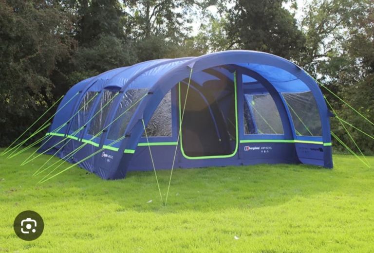 Berghaus 6XL air tent. Footprint, carpet, foot pump, pegs and windbreaker included. We’ve used the tent a handful of times and is in a great condition with plenty of life left in it. There is however a stain on the inside of one of the window coverin