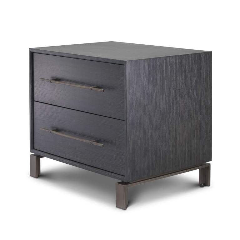 Luxury: Eichholtz Canova Bedside Table - Charcoal Grey Oak & Bronze (RRP £1,495)