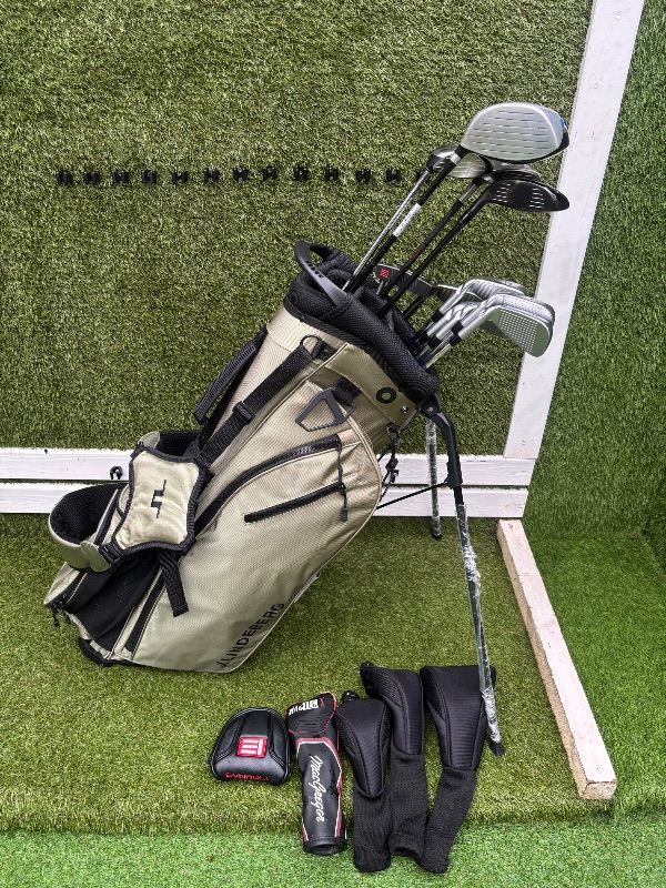 Ping i25 Irons, EVNROLL ER5 Putter, Mizuno S18 56° & Zoid Hybrid, Mixed Woods, New J.Lindeberg Bag