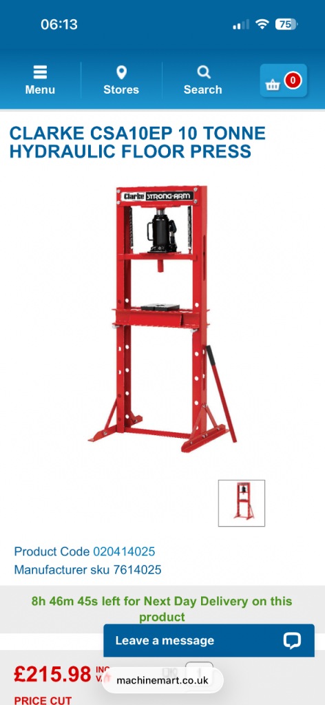 Great bit of kit easy to press in wheel bearing or axle bushes save a fortune in garage cost floor standing can be bolted into position collection form PL22