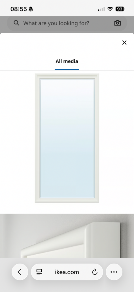Full-length mirror. Width: 75 cm Height: 165 cm The mirror can be hung vertically or horizontally to suit your needs and your space. Suitable for use in most rooms, and tested and approved for bathroom use.