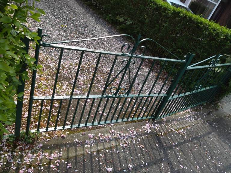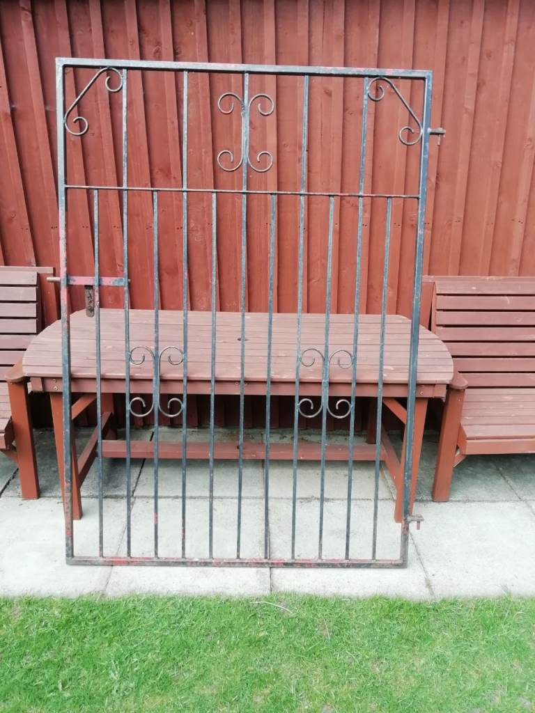 Wrought iron gate with hinges and catch. 1830 high 1300 wide. Needs painting. Uplift from Ballater. £60 ono