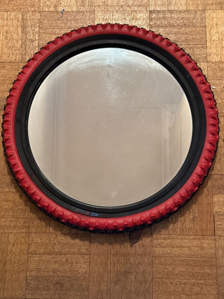 Bike tyre mirror 20” 90s IKEA mirror, real rubber bike tyre.
