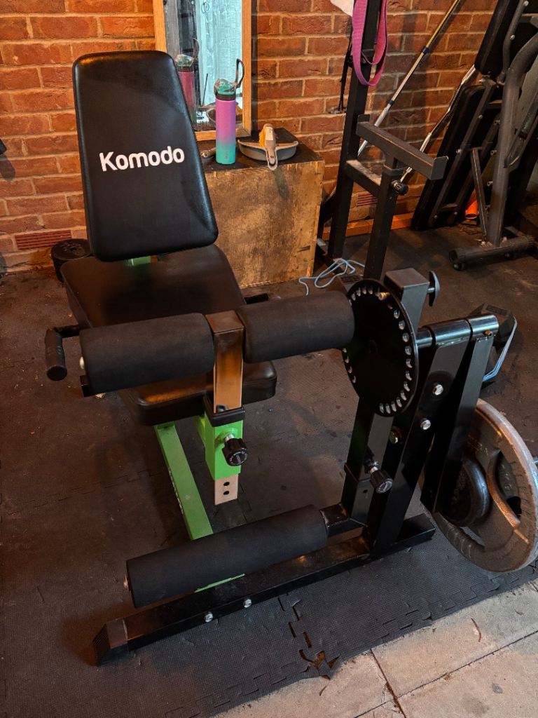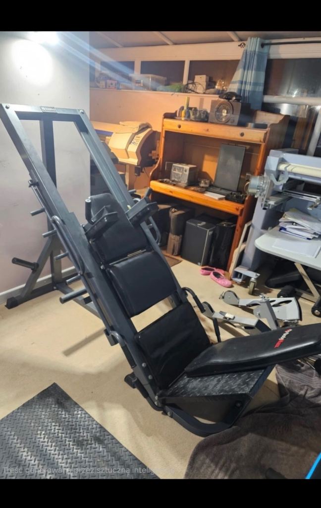 Home gym machine for leg press and curls, robust steel construction, can take 1 or 2 inch weight plates. Max user weight 130kg, max weights on bar 85kg so this is a beast!Hardly used so absolute bargain