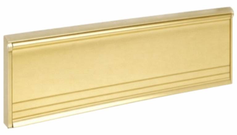 TAKEN :o) Letter box Plate in Satin Gold Brand new, never used and incls. the 2 supplied screws *As per the pictures size - 292 x 75mm Fits letter box hole in door: 254mm x 40mm Free to collect from Winchburgh