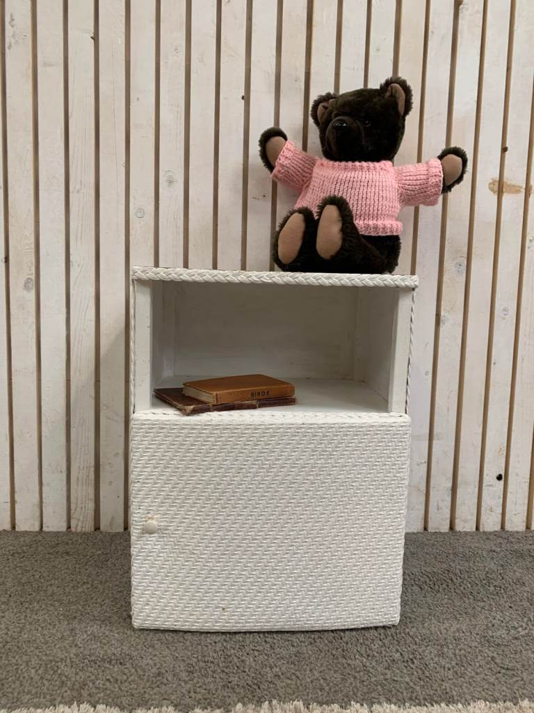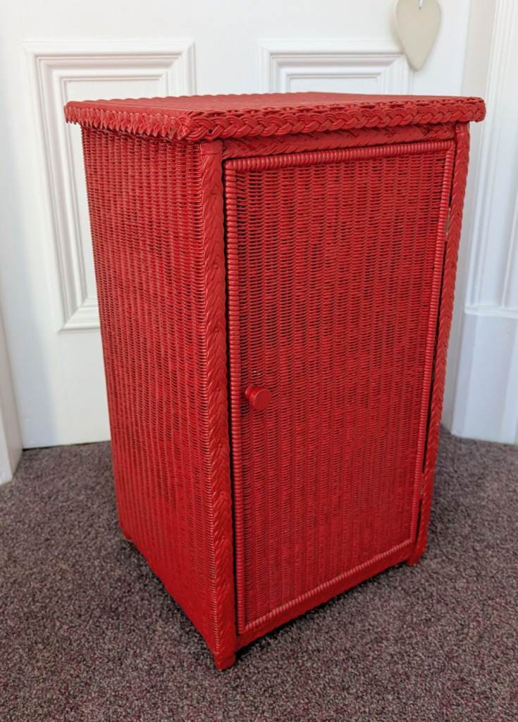 Pretty Lloyd Loom red painted bedside cabinet in nice condition for age. 64 cm h x 38 w x 32 d. Welcome to view, cash on collection.