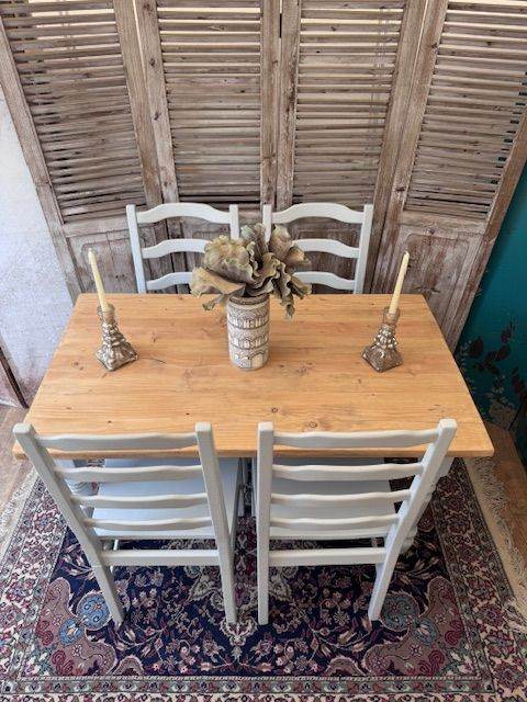 Lovely solid pine rectangular dining table with 4 chairs – local delivery
