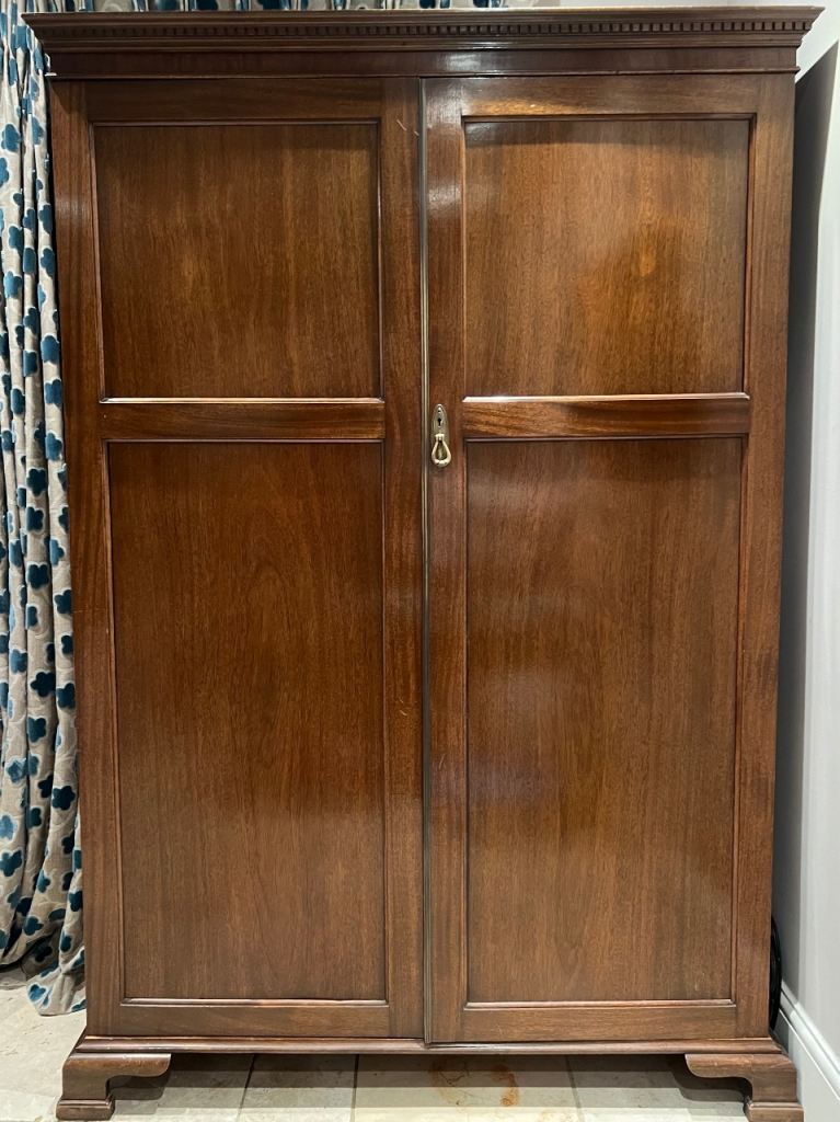 Stag Minstrel Double Wardrobe with Mirror, Shelves and Drawers. Dark Mahogany Comes as shown in very good used condition. This version of the popular wardrobe has interior shelves and drawers for smaller items as well as the long hanging space