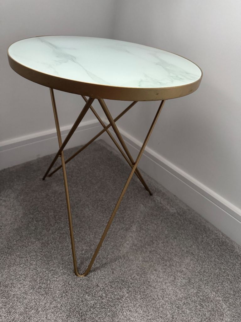 Marble Effect & Metal Side Table , 18 in High & 16 in Wide , Good Condition, Very Useful, Clean. Expensive when brand new, Quality, Great Decoration. Collection from Russell's Hall, bargain ÂŁ5.