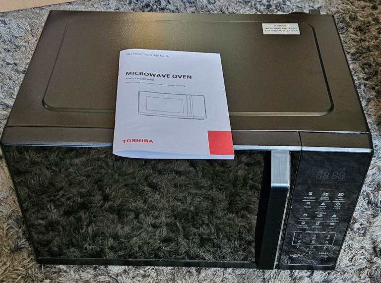Brand new in box. Free delivery in Edinburgh. Mirrored Finish Design: This Toshiba mirorr black microwave features a sleek black body and contemporary mirror door finish, equippped with recise knobs, textured buttons, full touch control, electric p