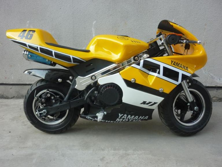 Mini moto (pocket bike 49cc petrol) Brand new mini moto with pull starter come in the box Available in black,blue and red colours Also available mini quad bikes and crosser with 49cc petrol engine . Pit bikes with big wheels 125cc Thanks