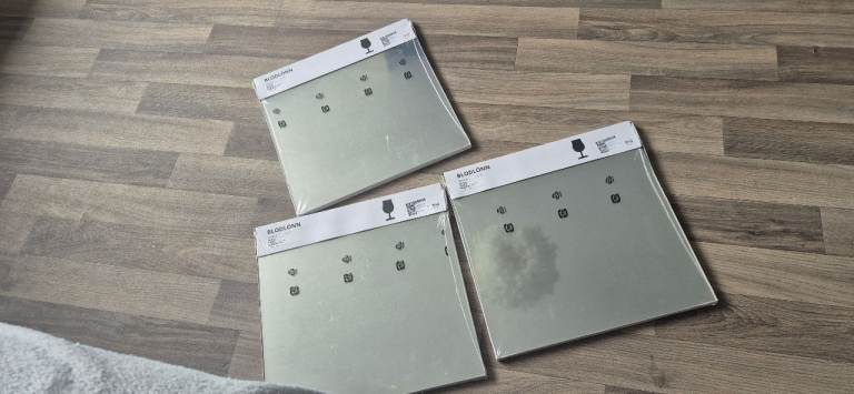 I have 3 packs with 4 mirrors in each. Brand new never been opened only selling as bought too many packs. 30cm x 30cm £15 for the 12.