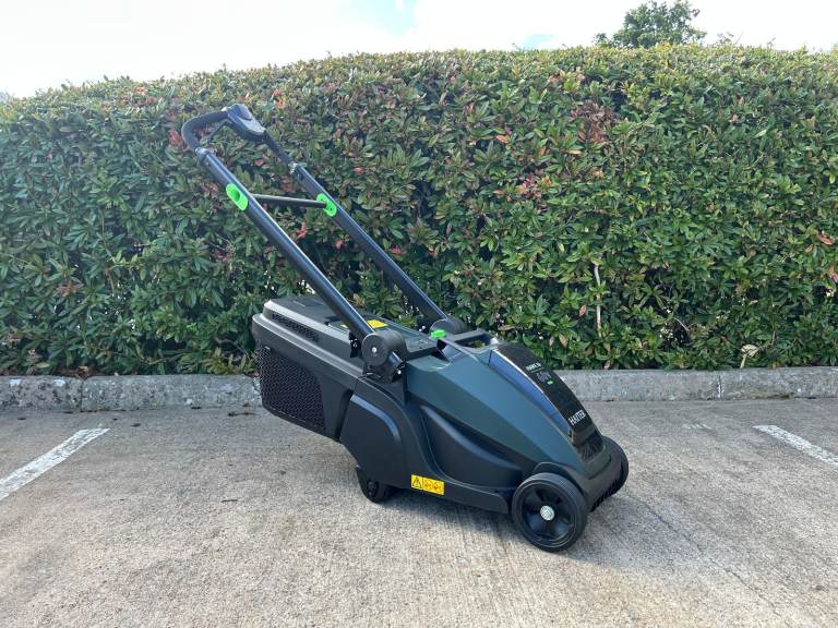 Powerbase Electric Mower with Rear Roller - Green / 37cm Cutting Width, Used once selling due to move and need gone for space. Collection only.