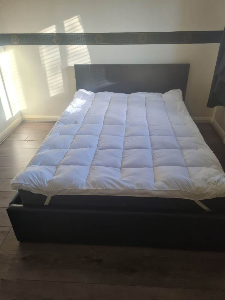 Black Faux Leather Ottoman gas lift bed Double bed, mermory foam mattress and topper are free
