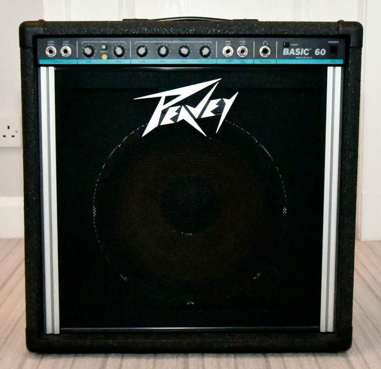 The Peavey Basic 60 is a solid-state, 50-watt bass combo amp known for being a durable, reliable, and straightforward workhorse, featuring a 12-inch speaker, essential EQ (Bass, Mid, Treble), Bright/Normal switch, Active/Passive input, headphone jack