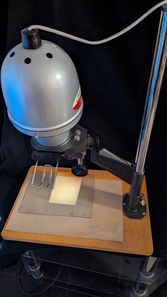 Vintage Russian Photographic Enlarger dating from late 1960's/early 1970's. In working order with wear and tear reflecting usage. Repair to light filter can be seen in photos. Some deterioration to case lining consistent with age. See photos fo