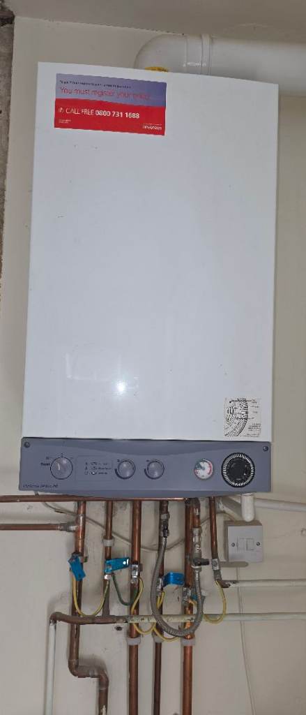 The Potterton gas boiler is a compact storage tank water heater designed for indoor use. With a metal tank lining and an energy efficiency rating of A, this white boiler operates on gas power with around 24kW. Ideal for heating systems, this boiler f