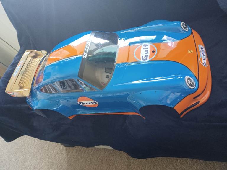 This is my new Rovan Rf5 petrol 36cc RC car never been run bought this last year. I got the unpainted version and decided on the gulf colours, the pictures don't do this car justice as it is 3ft in length, it comes with everything you will need to g