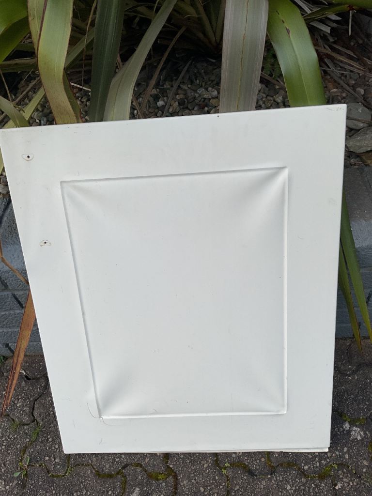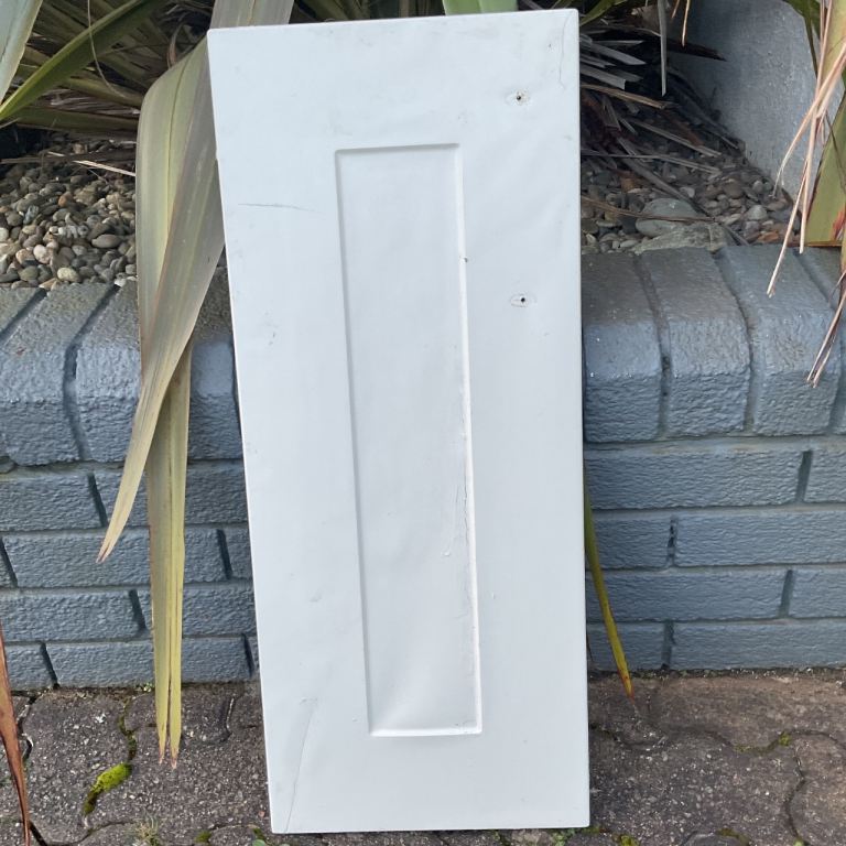 B&Q IT Kitchen Range Door - Ivory Shaker This range was sold around 15-20 years ago and I’m listing all doors, drawer fronts, corner post and end panel. SIZE: 60cm x 71cm CONDITION: The cream top layer has lifted extensively over this door.