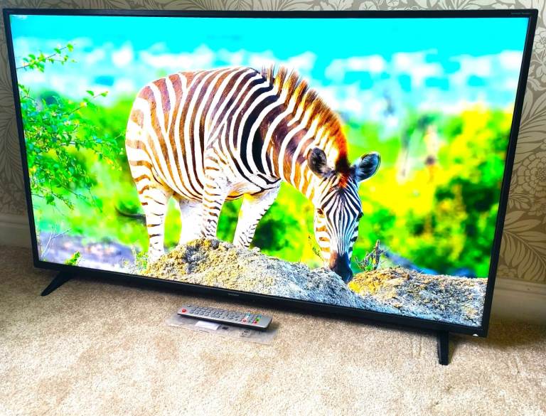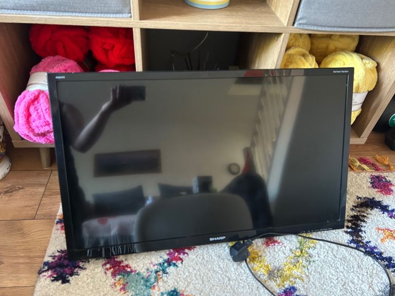 Sharp 32” smart tv with heavy duty wall bracket. Bracket extends and folds flat to wall.