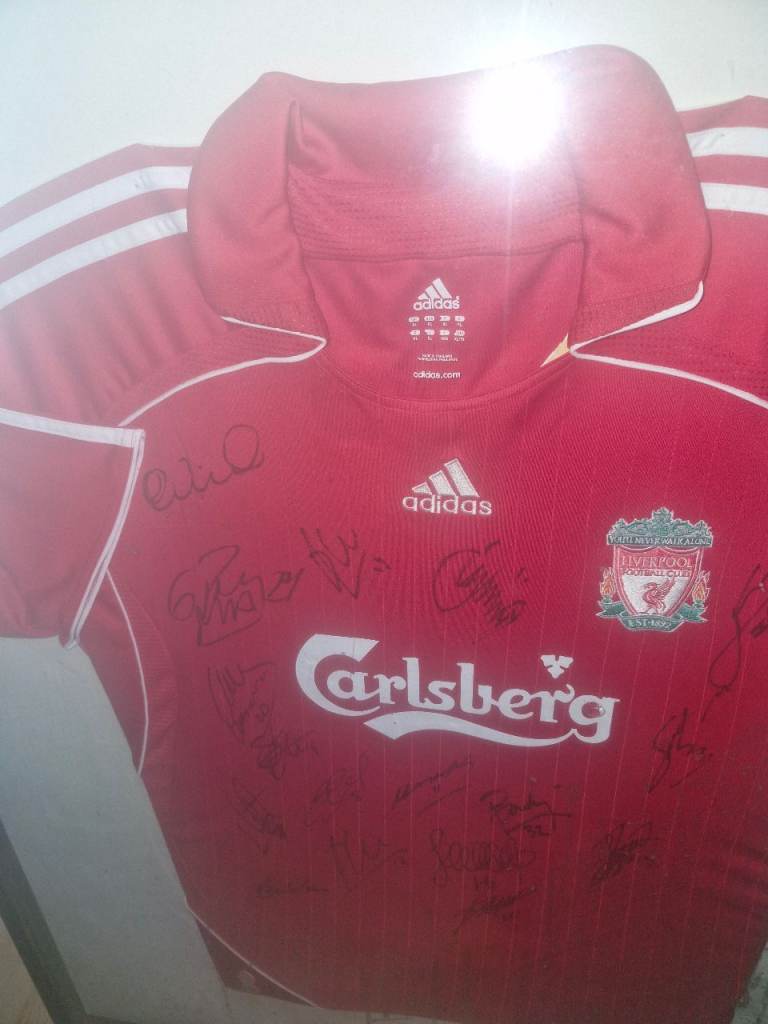 shirt signed by full 2007 liverpool team that reached champions league final in frame. including Gerrard, Carragher, Fowler, Alonso, Hyppia amongst other club legends