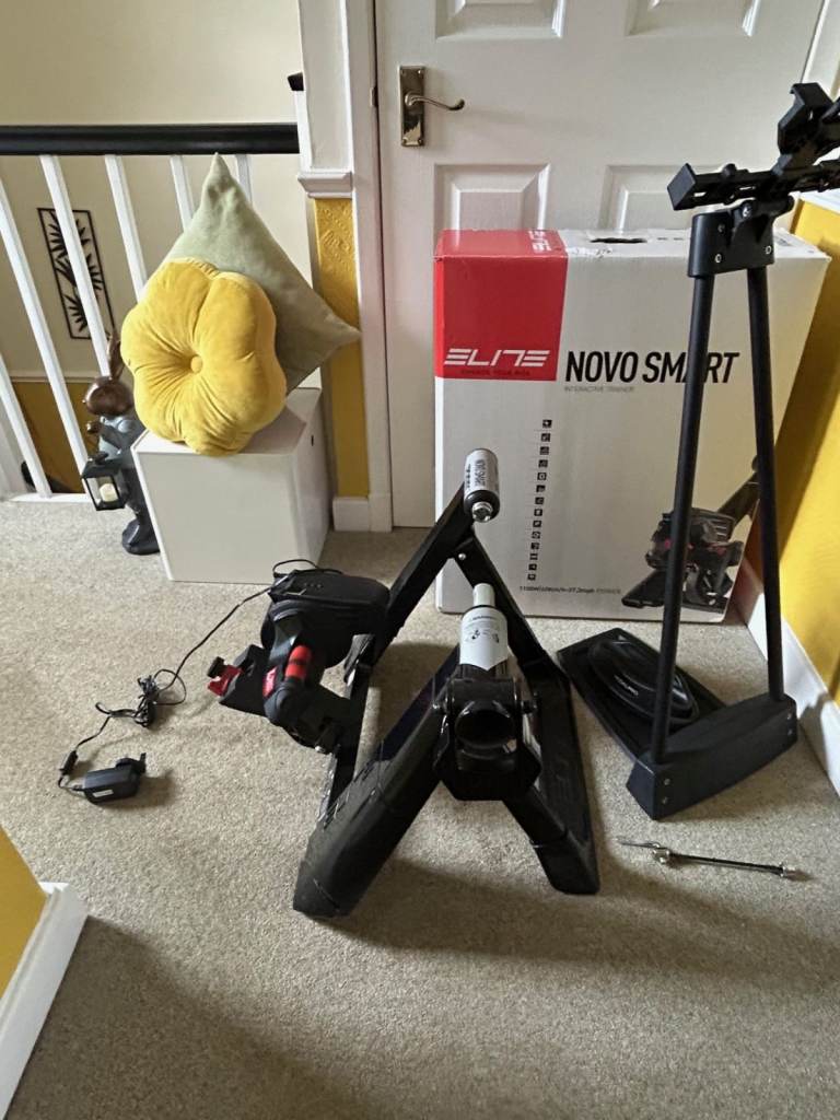 This Turbo trainer set comes with trainer suitable for use with applications such as Zwift. The set includes trainer, Wheel skewer for secure bike attachment, front wheel rest and TACX tablet stand. The Elite Novo Smart Turbo Trainer is a high-qua