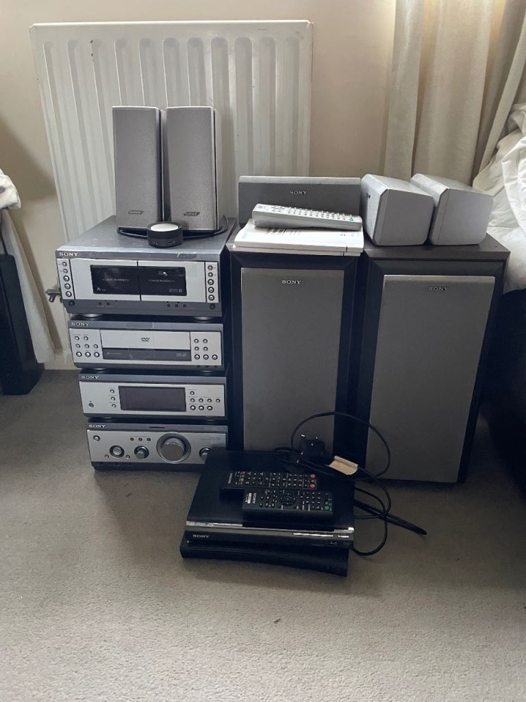 Full stereo system with various Sony components, Bose speakers and others included. Comes with multiple remotes and cables as seen. Working condition, some general wear from use. Collection only or can be posted for an additional fee. Cash on coll