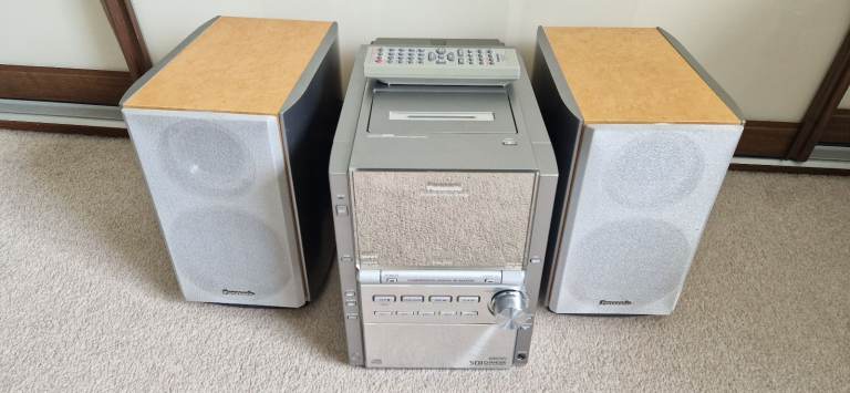 5 disc CD multi-changer with radio tuner & tape deck. In full working order. Great sound and in fantastic condition. Includes: 5-CD changer (carousel style) Single cassette deck FM/AM radio tuner Matching Panasonic speakers Remote c
