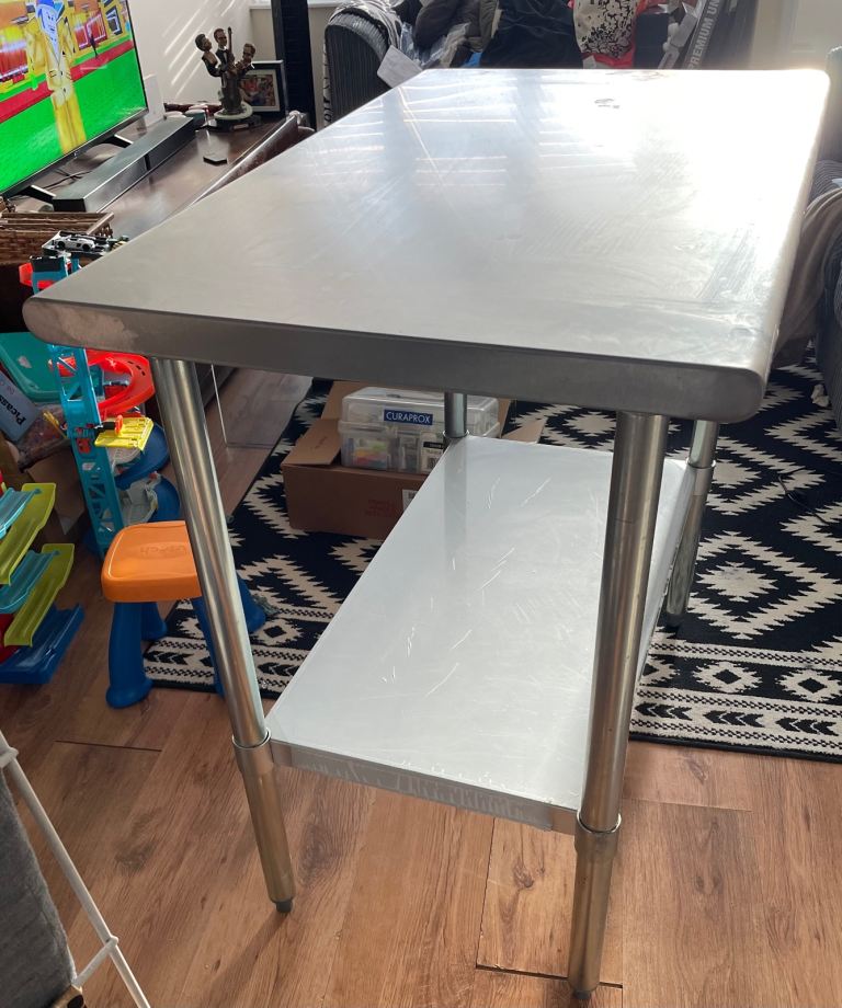Used only to store boxes and small appliances in kitchen. Shelf still factory wrapped. 100cm (L), 60cm (D), 91cm (H)