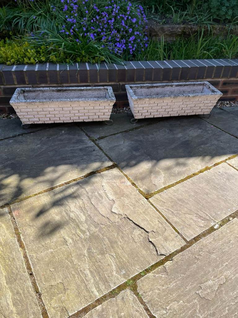 Decorative stone troughs and planters Around 10 assorted stone pots and troughs for sale. Priced from £10 to £15 each. Good condition. Plants and flowers not included.