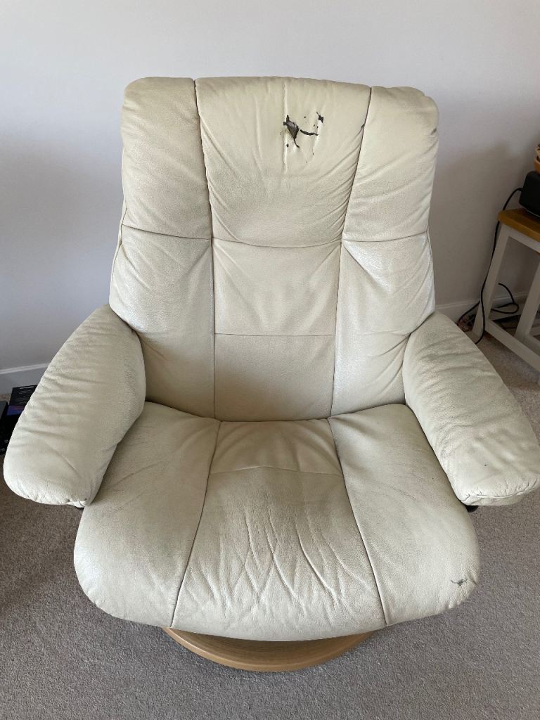Hi I have this high quality comfy recliner comfy chair with foot stool from smoke and pet free home , I can deliver free locally in plush fabric great quality stressless styles chair in plush clean fabric