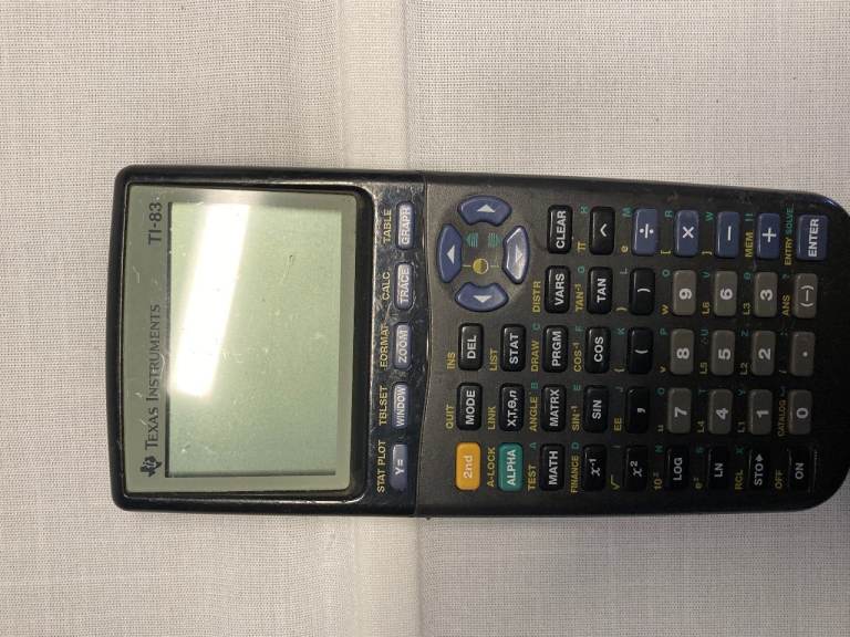 Up for sale is a dependable Texas Instruments TI-83 graphing calculator, an essential piece of kit for any student tackling advanced maths, science, or statistics. This robust model is highly recommended for GCSE and A-level coursework, featuring a s