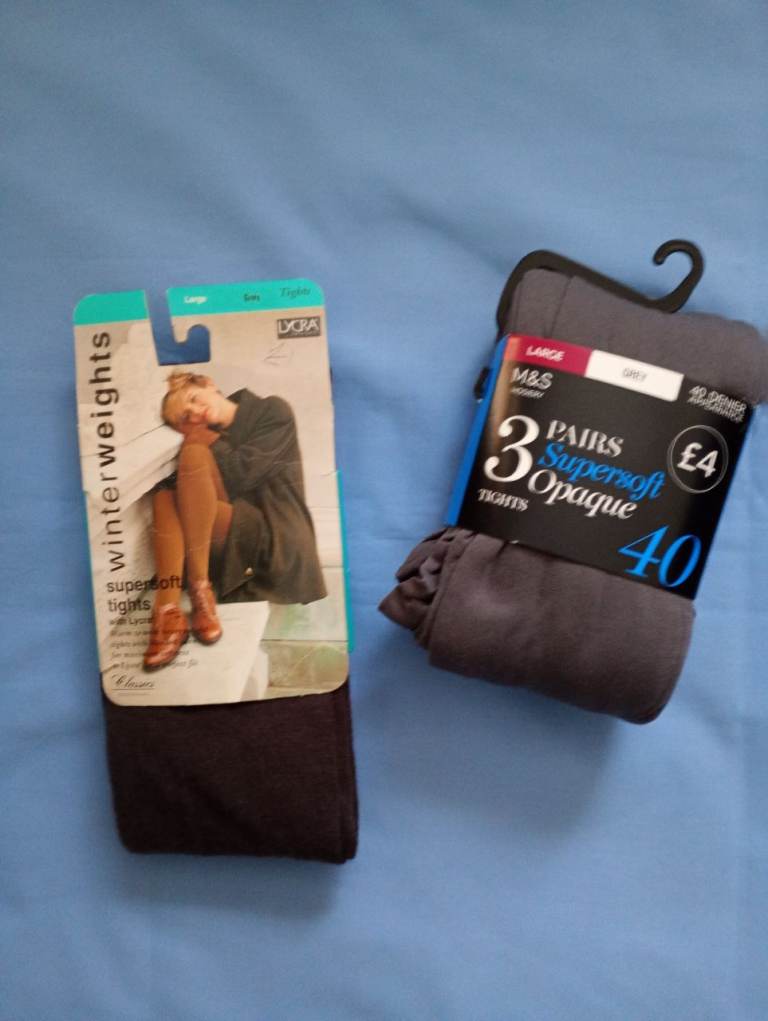 LADIES TIGHTS. LARGE. GREY. TWO NEW PACKS. M&S & DEBS. 4 pairs in total for winter use.
