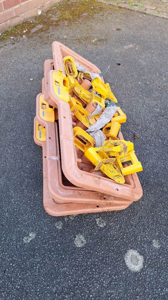 Qty 3 plastic self watering troughs for vegetable gro bags c/w fittings