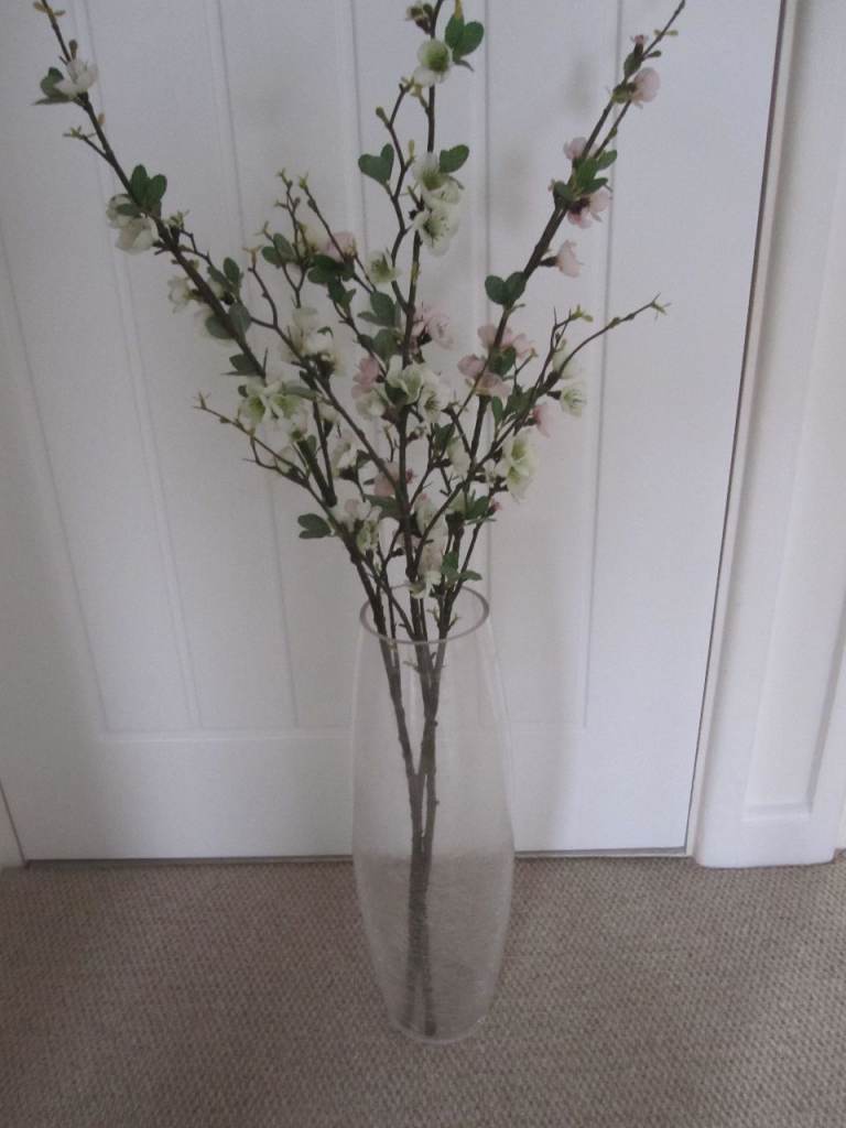 Lovely tall vase including blossom twigs. Crackled glass look. Perfect condition.