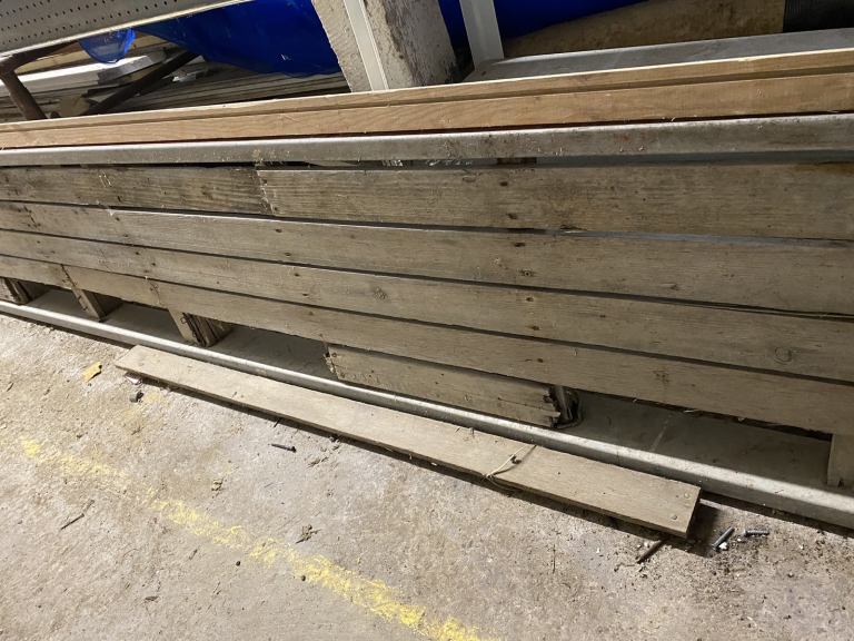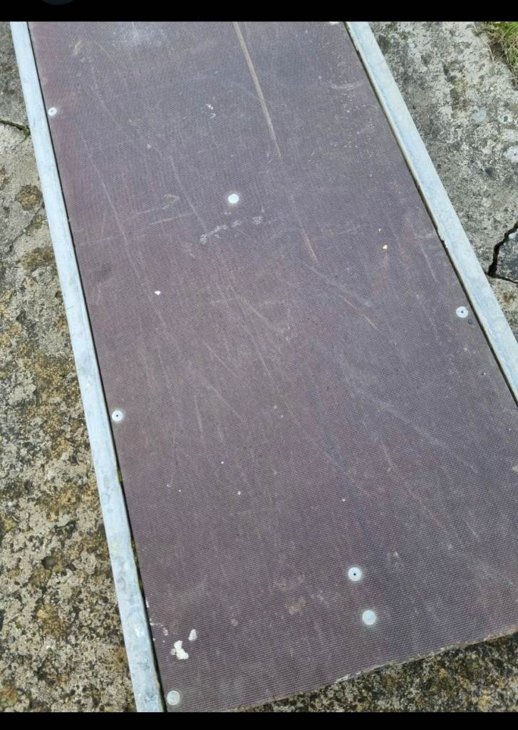 Youngman type walking board ,Used 4.950mm long by .450mm wide and 90/100 deep in need of some TLC to the boards and struts strong alloy sides