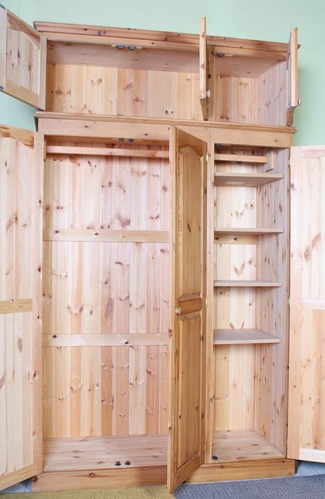 Sussex Pine Online - Second-Hand Pine Furniture - Hellingly - East Sussex Farmhouse Pine Furniture Shop & Warehouse Triple Pine Farmhouse Wardrobe With Top Box & Shelves It has 2 hanging rails and the shelves can be removed. With some g