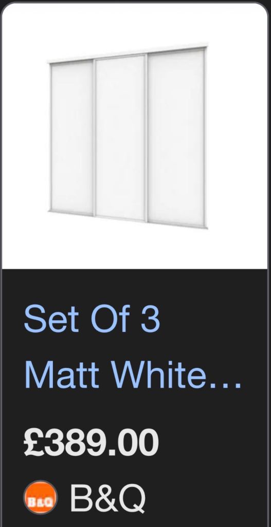 Free to a good home Full kit and storage . You will need to dismantle and provide own van . Worth over £500 at B&Q … Need gone ASAP . Each mirrored door is 7ft in height and 3feet in length . U will need to unscrew the door rails . The interior can p
