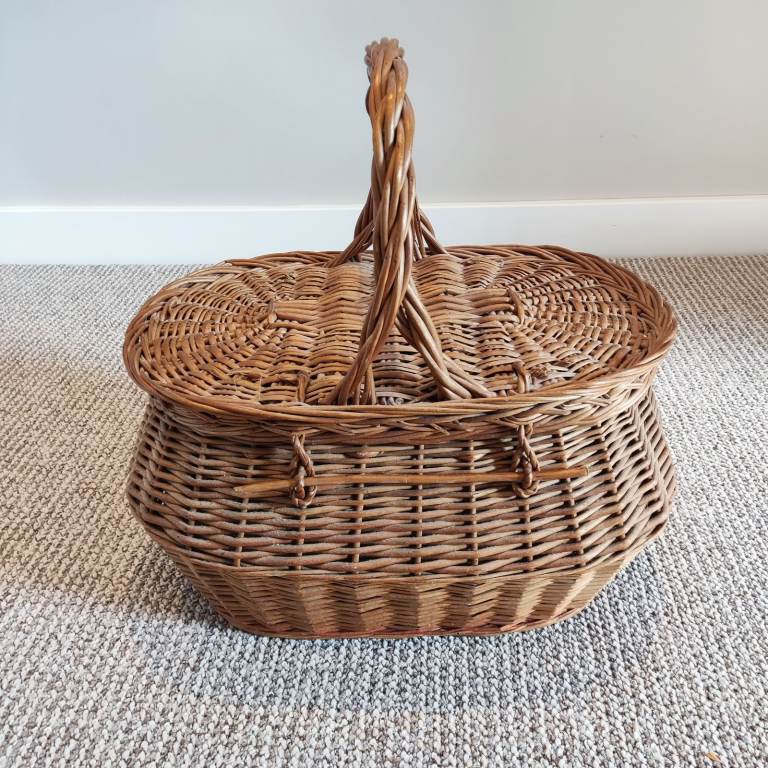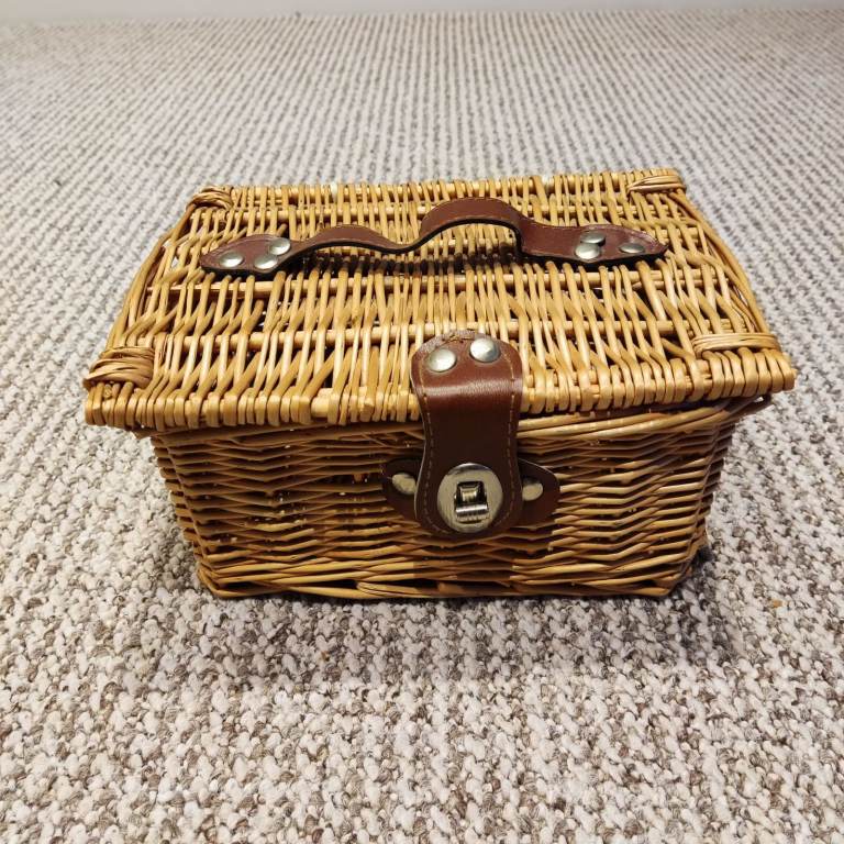 Small Wicker Rectangular Storage Basket Hamper Twist Lock Brown