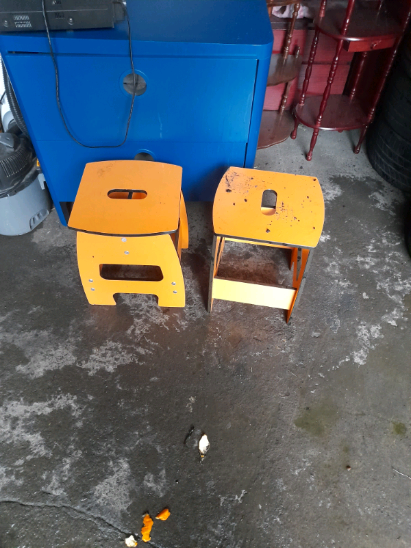 TWO WOODEN STOOLS IN USED CONDITION TEXT ME FOR MORE INFO PICK UP ONLY SOLD AS SEEN PRICE IS FOR BOTH.