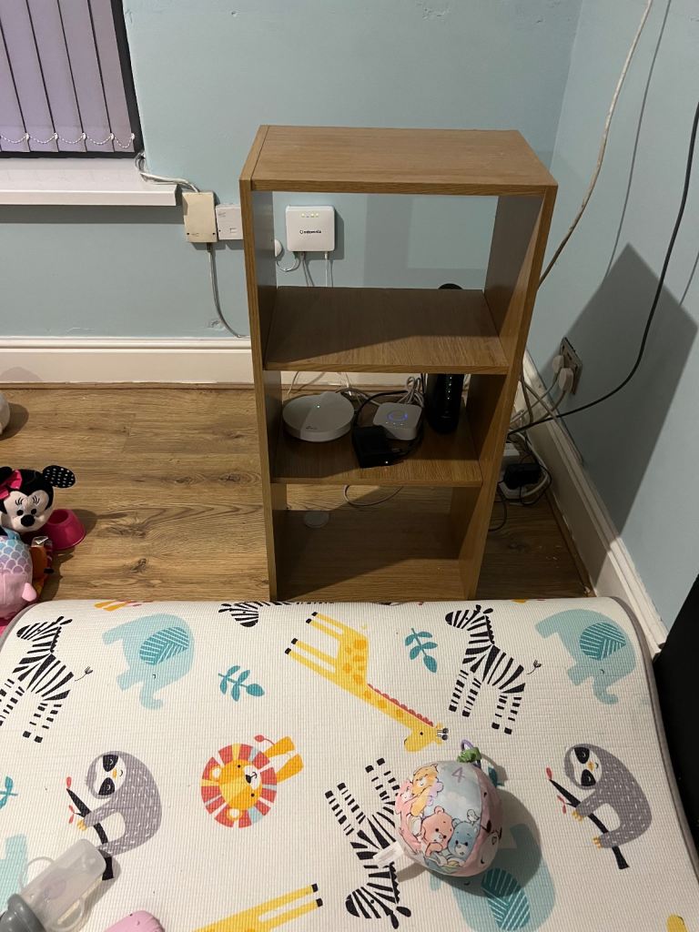 A solid wood collection of desk, chair and bookcase. The top of desk requires some TLC but otherwise, in good condition.