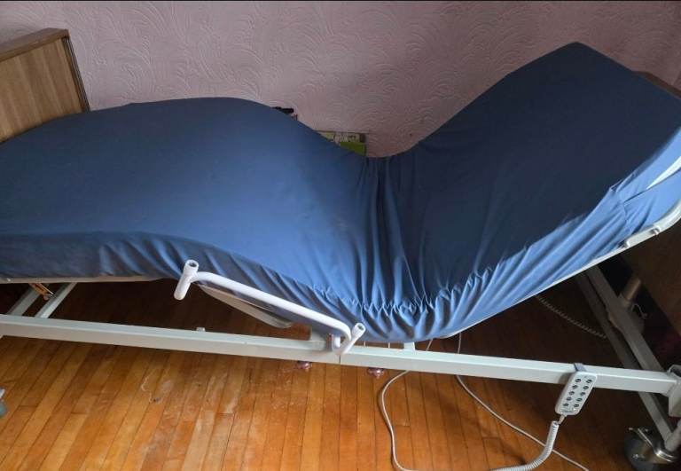 Only been used for a 2weeks so its in very good condition with 10 functions on remote to make life easy fully adjustable and able to lift up to easy clean underneath oak look surround ,side safety rail to keep person safe , fully waterproof matress g