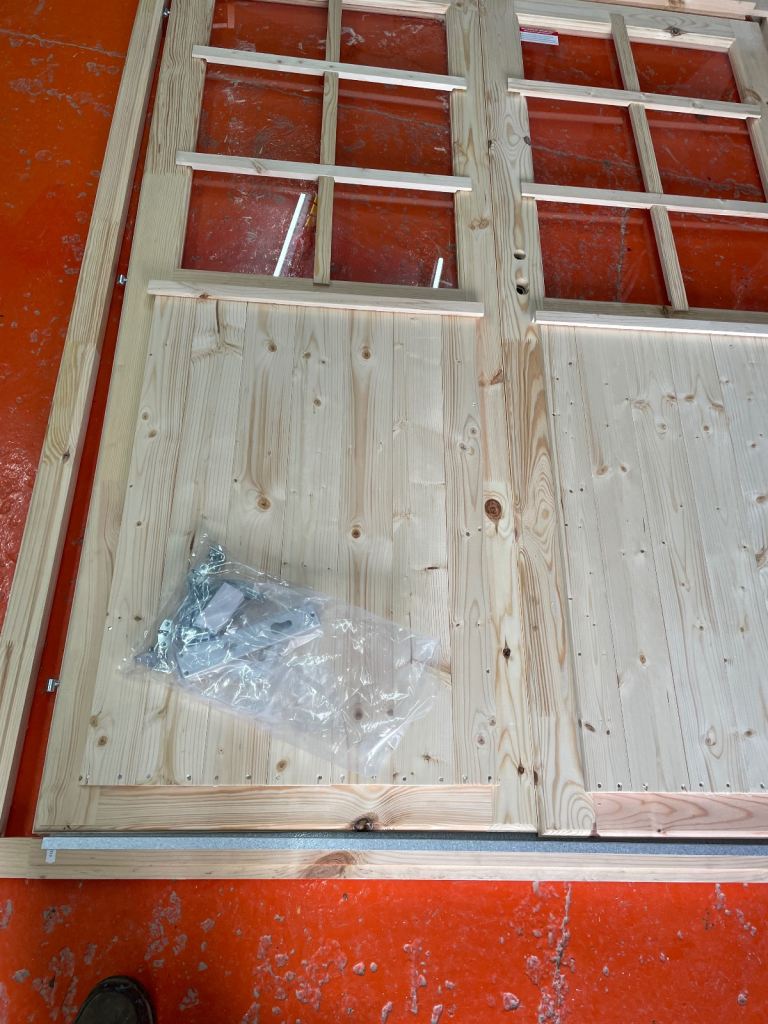 Log cabin doors and frame with all furniture, brand new. Approximately 1525 x 1970