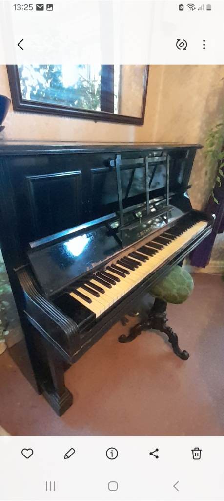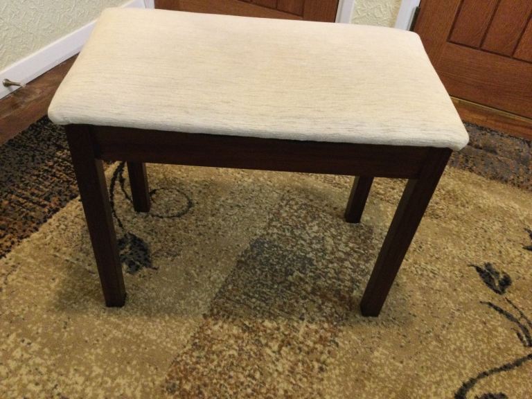 Piano stool, lid opens, we have covered the top just for decor underneath is green. Buyer to collect.