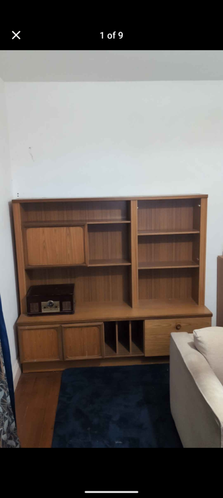 FREE. Maskreys teak dining table, six chairs and matching sideboard. Must be collected.