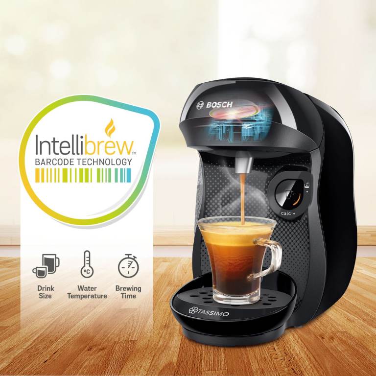 BRAND NEW FACTORY SEALED IN RETAIL BOX BOX IS IN PERFECT CONDITION £120 RRP BOSCH TASSIMO HAPPY COFFEE MACHINE - BLACK EDITION LATEST EDITION WITH INTELLIBREW LASER BARCODE TECHNOLOGY THIS BOXSET ALSO INCLUDES £20 TASSIMO VOUCHERS! CASH ON COLLEC